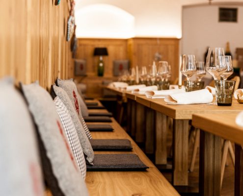 Holzgetäfelte Wände, gemütliche Atmosphäre und perfekt für mittelgroße Feiern im gesetzten Rahmen.